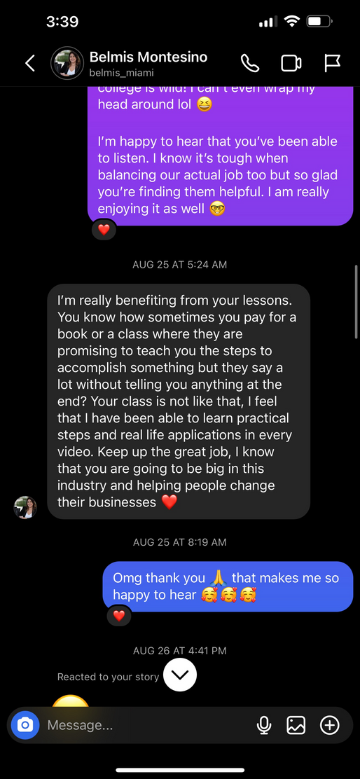 “After listening to you guys I decided I wanted to invest in myself because I want to make money and I want to get clients. I really love what you’re doing with this. Its like a bible to me. You just created a bible for me. Thank you for breaking this down step by step.”